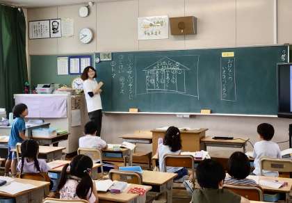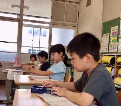 7月8日(火)の梅坪小(5)1年生 国語 ひたがな・カタカナの習得