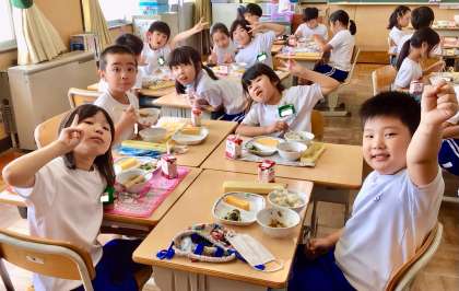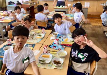 7月8日(火)の梅坪小(10)2年生の給食風景