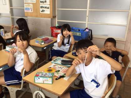 7月8日(火)の梅坪小(18)3年生 理科 音の性質