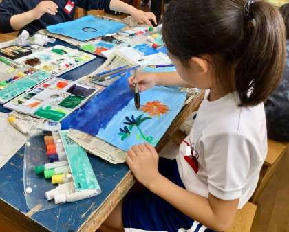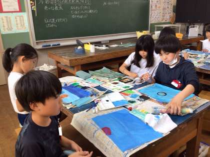 7月8日(火)の梅坪小(20)4年生 図工 まぼろしの花