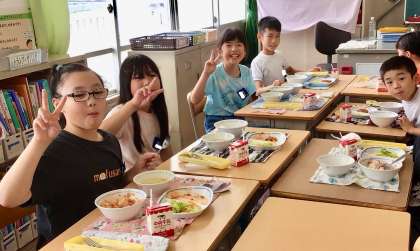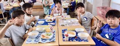 7月9日(水)の梅坪小(8)3年生の給食風景