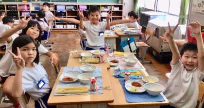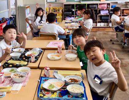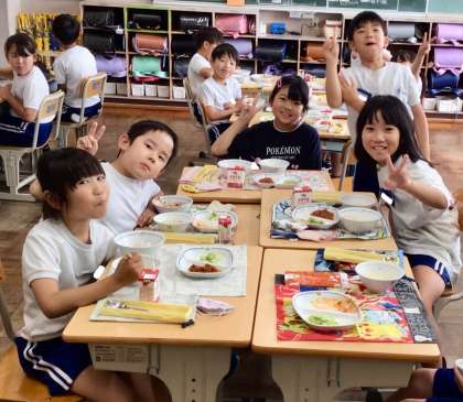 7月9日(水)の梅坪小(9)3年生の給食風景
