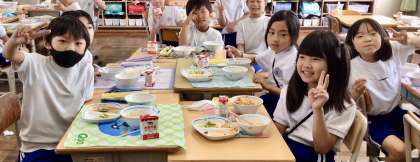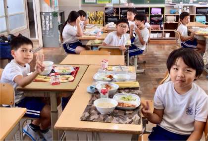 7月9日(水)の梅坪小(11)3年生の給食風景