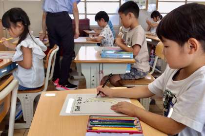 7月9日(水)の梅坪小(16)1年生 ALTの授業