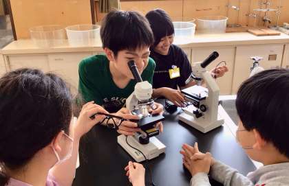 ホウセンカの根から取り入れた水がどのように茎や葉に運ばれるのか、また、葉からどのように水分が蒸散するのかを調べるために顕微鏡で観察しました!