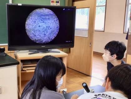 顕微鏡の使い方の動画や実際に見えた画像提示を教師用タブレットが行ってくれます。