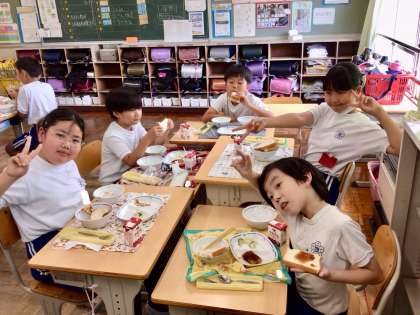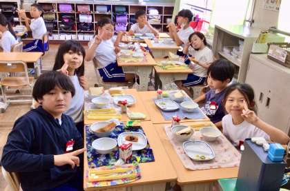 7月10日(木)の梅坪小(10)4年生の給食風景