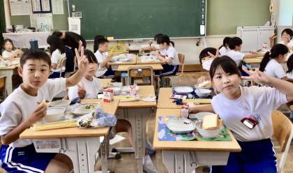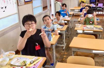 7月10日(木)の梅坪小(11)4年生の給食風景
