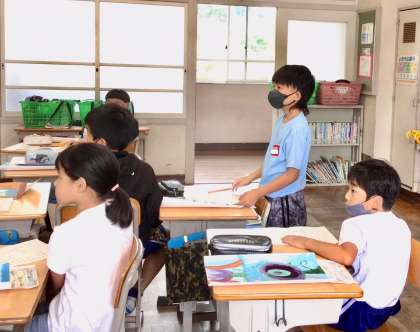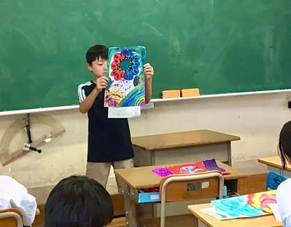 7月10日(木)の梅坪小(19)4年生 図工 鑑賞の授業