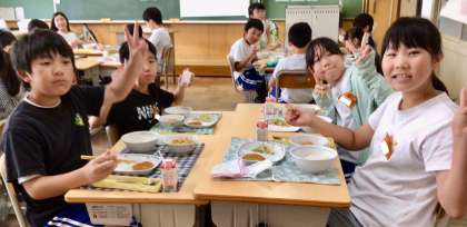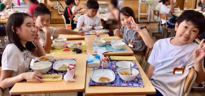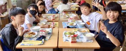 7月11日(金)の梅坪小(7)5年生の給食風景