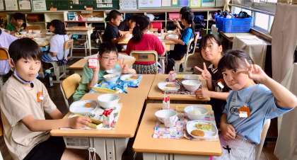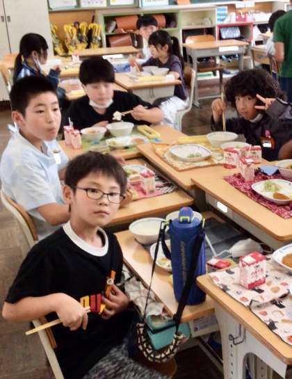 7月11日(金)の梅坪小(8)5年生の給食風景