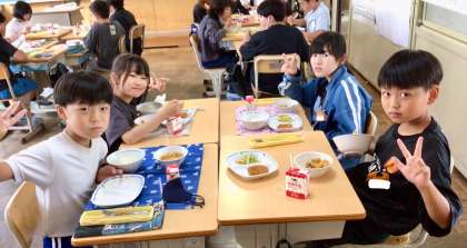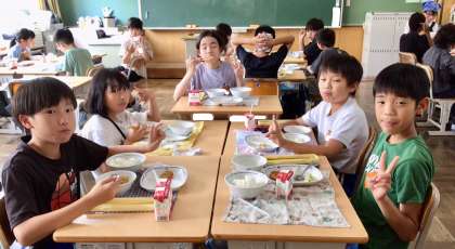 7月11日(金)の梅坪小(9)5年生の給食風景