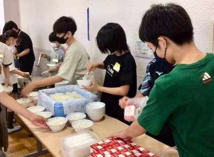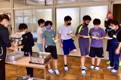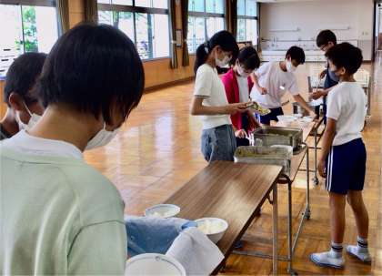 7月14日(月)の梅坪小(5)6年生の給食風景