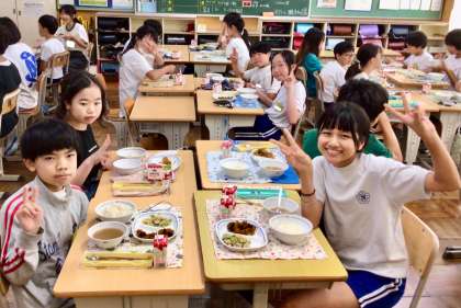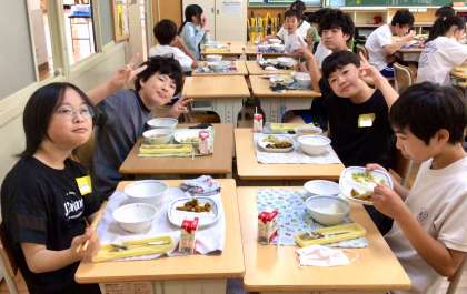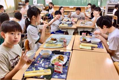 7月14日(月)の梅坪小(10)6年生の給食風景