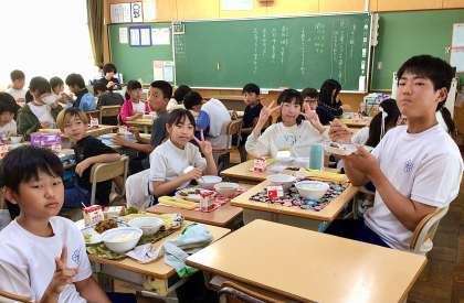 7月14日(月)の梅坪小(11)6年生の給食風景