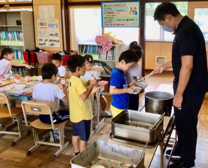 7月16日(水)の梅坪小(4)2年生の給食風景