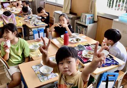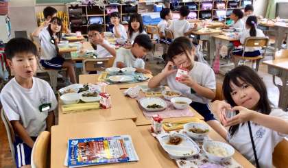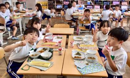 7月16日(水)の梅坪小(6)2年生の給食風景