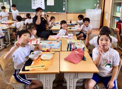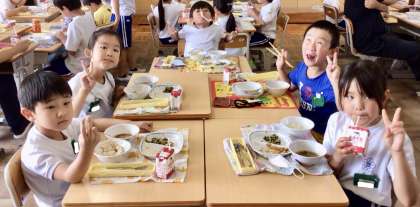 7月16日(水)の梅坪小(9)2年生の給食風景
