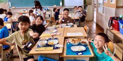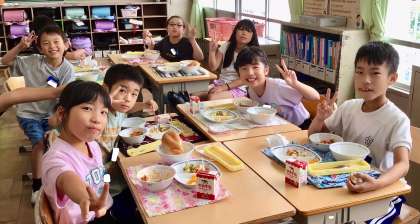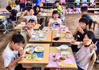 7月17日(木)の梅坪小(10)3年生の給食風景