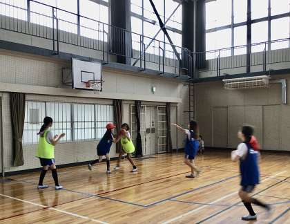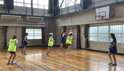 7月17日(木)の梅坪小(15)6年生 体育 バスケットボール