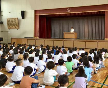 7月18日(金)の梅坪小(5)夏休み前 全校集会
