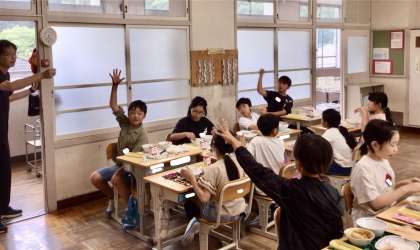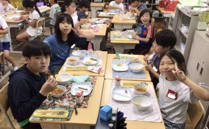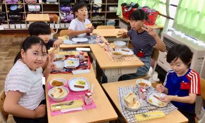 7月18日(金)の梅坪小(12)4年生の給食風景
