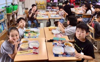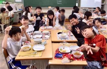 7月18日(金)の梅坪小(15)4年生の給食風景