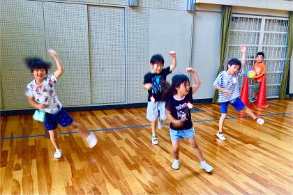 エアコンの効いた体育館で踊るのは、1年生のみなさん。