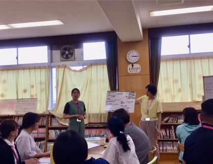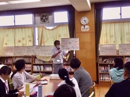 写真は ディスカッション後、グループの代表が学びのポイントを発表し 全体で共有しているところです。