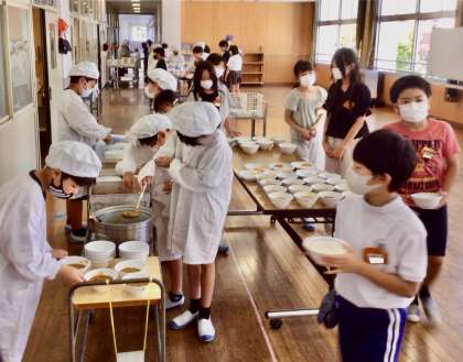 9月の第1回目の給食訪問は、いつも明朗快活な5年生の皆さんです♪