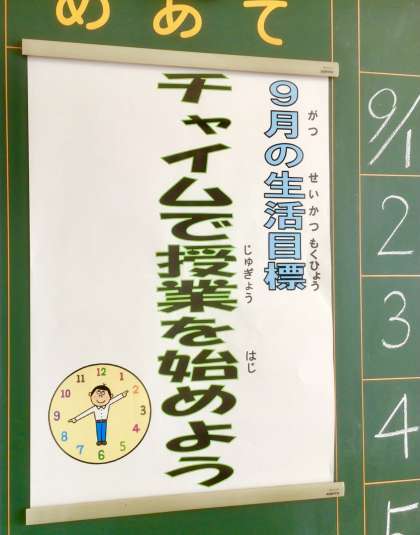 今月の生活目標は、チャイムで授業を始めよう! です。