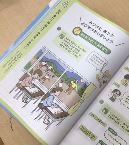 9月2日(火)1年生 音楽 みのまわりの おとに みみを すまそう!