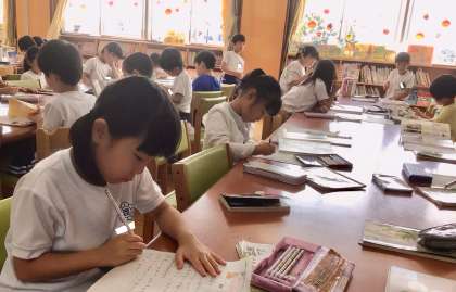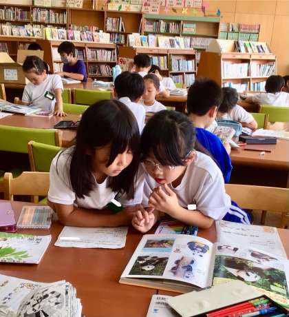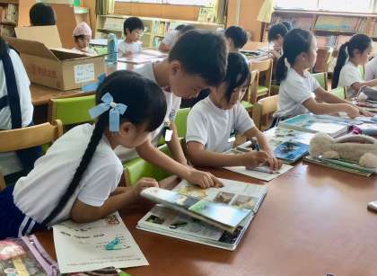 図書室で、図鑑を使って動物園の動物を説明する看板の内容を調べていました!
