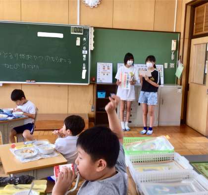 今日の給食中に、美化委員会の皆さんが、今月の目標の説明と清掃アンケートのために全クラスを回りました。