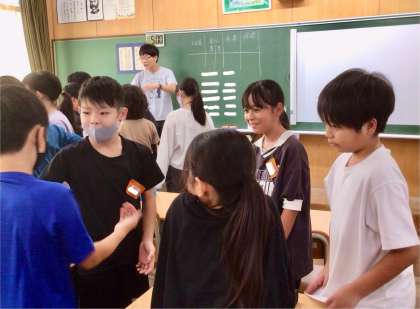 2組では、班長、食事、美化、保健係を話し合って班を決めていました。