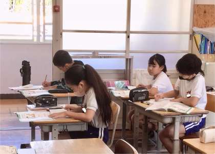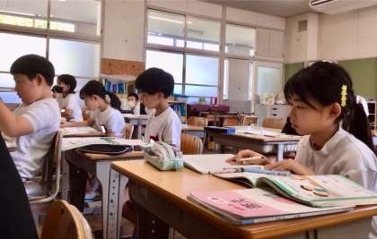 ひとクラスを半分ずつに分けて、2人の教師が教えています。