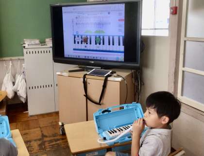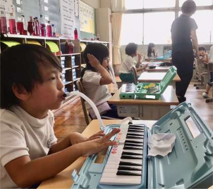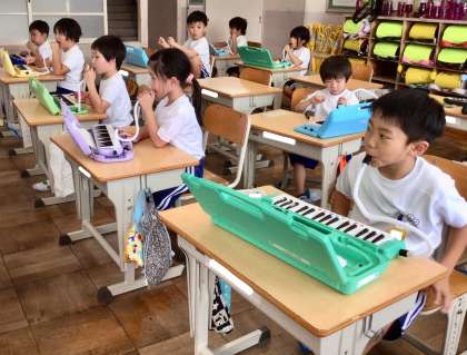 9月10日(水)1年生 音楽 鍵盤ハーモニカと仲よくなろう!
