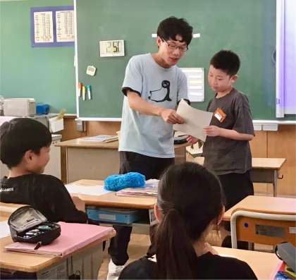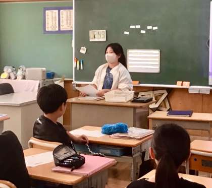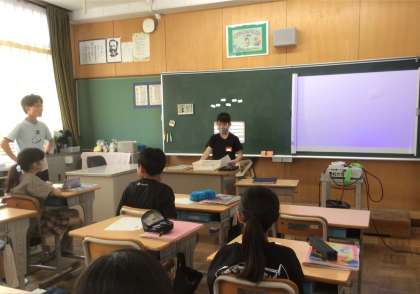 2組です。キャンプの日程のなかで、学年の前でクラスの紹介・発表をする場面があります。
