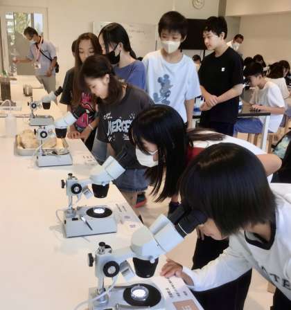 それぞれがどんな石かは、特設コーナーの顕微鏡で確認できます!