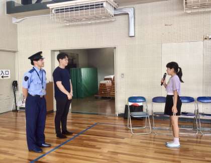 豊田警察署 生活安全課の方からは「皆さんは最初の放送で 不審者が侵入したことがわかっていたはずですが、校舎のどこからも音がしなかったです。皆さんが不審者に、子どもたちがどこにいるのかわからない と思わせたことが素晴らしかったです。」とお褒めの言葉をいただきました。