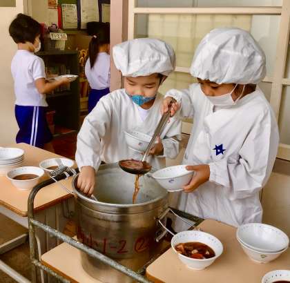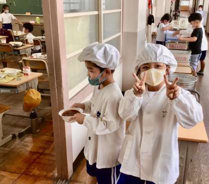9月22日(月)1年生の給食風景