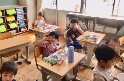 9月22日(月)1年生の給食風景