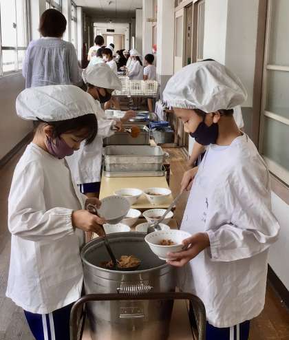 今日は スポフェスのダンス練習を頑張っている、パワー全開の2年生の給食風景をお届けいたします!