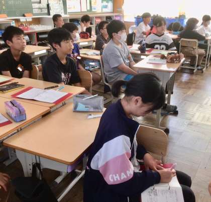 どのクラスも、メモをとりながら先生の話を真剣に聞く姿がありました。