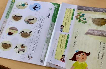 「つばめ」のお話を学習していました。この教材では、自然を愛護する気持ちを育むことをねらいとしています。