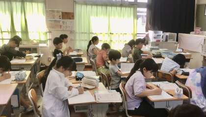 問題文を教師用タブレットから投写し、子どもたちが意識できるようにしていました。