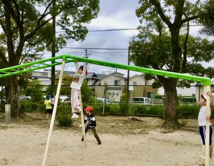 雲梯(うんてい)は、握力や腕力がアップしますね。