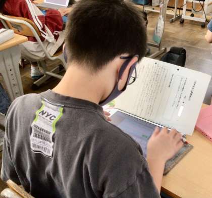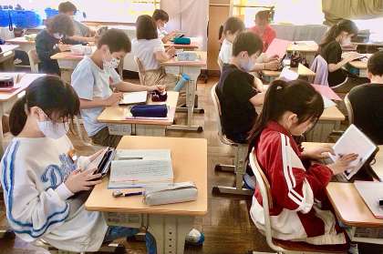 子どもたちは、音読と調べ学習を通して感じ取った工夫を 学習用タブレットを通して 仲間と交流していました。