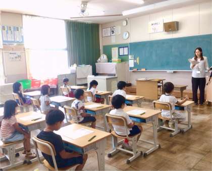 梅坪小学校の中を探検するかのように、担当職員の後について歩く様子がかわいらしかったです。