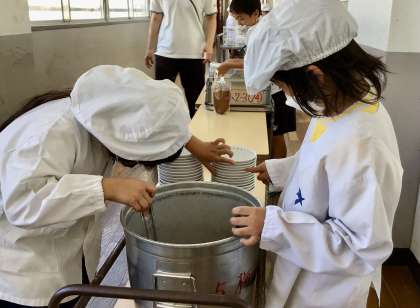 今日は いつもにぎやかな2年生の給食風景をお届けいたします!